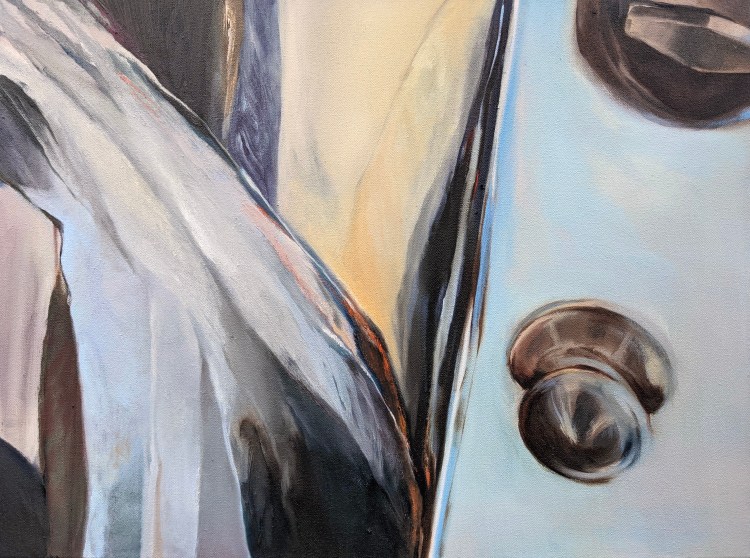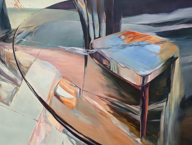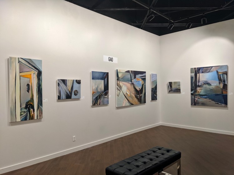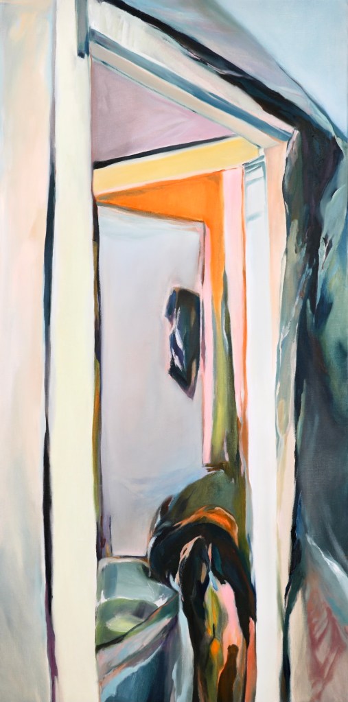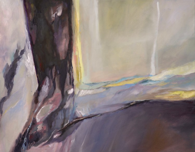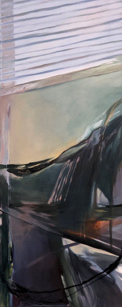 In this series of paintings, the objects and structures of my apartment and the abstracted landscape interact in different ways. They illustrate my searching for movements in the stable, and the unlimited in the limited. Sometimes I am yelling through my brushstrokes and colors, but at other times there is a calm meditative moment. I am stepping out of my long-time comfort zone, both physically and mentally. There are struggles and doubts, but I look forward and have hope.